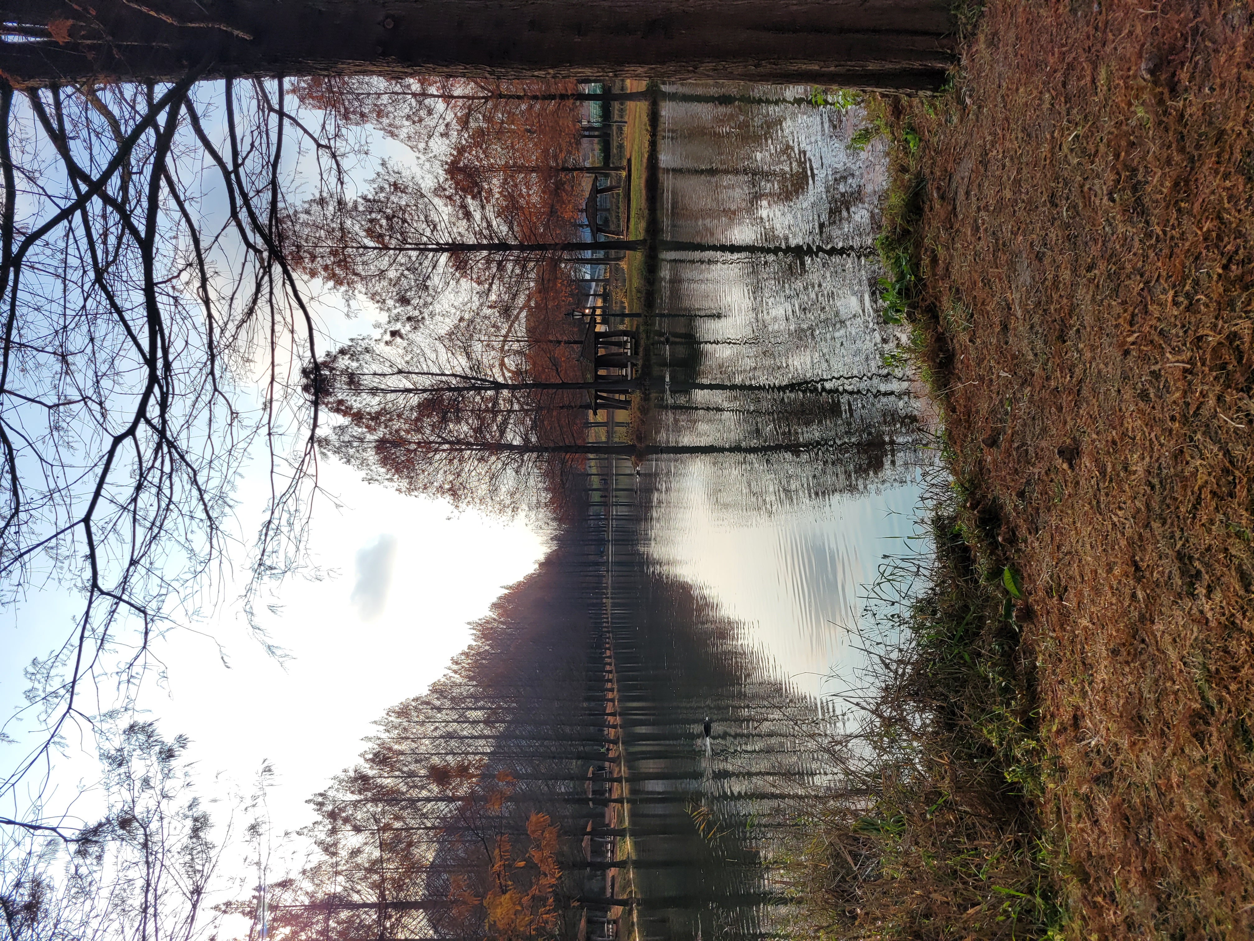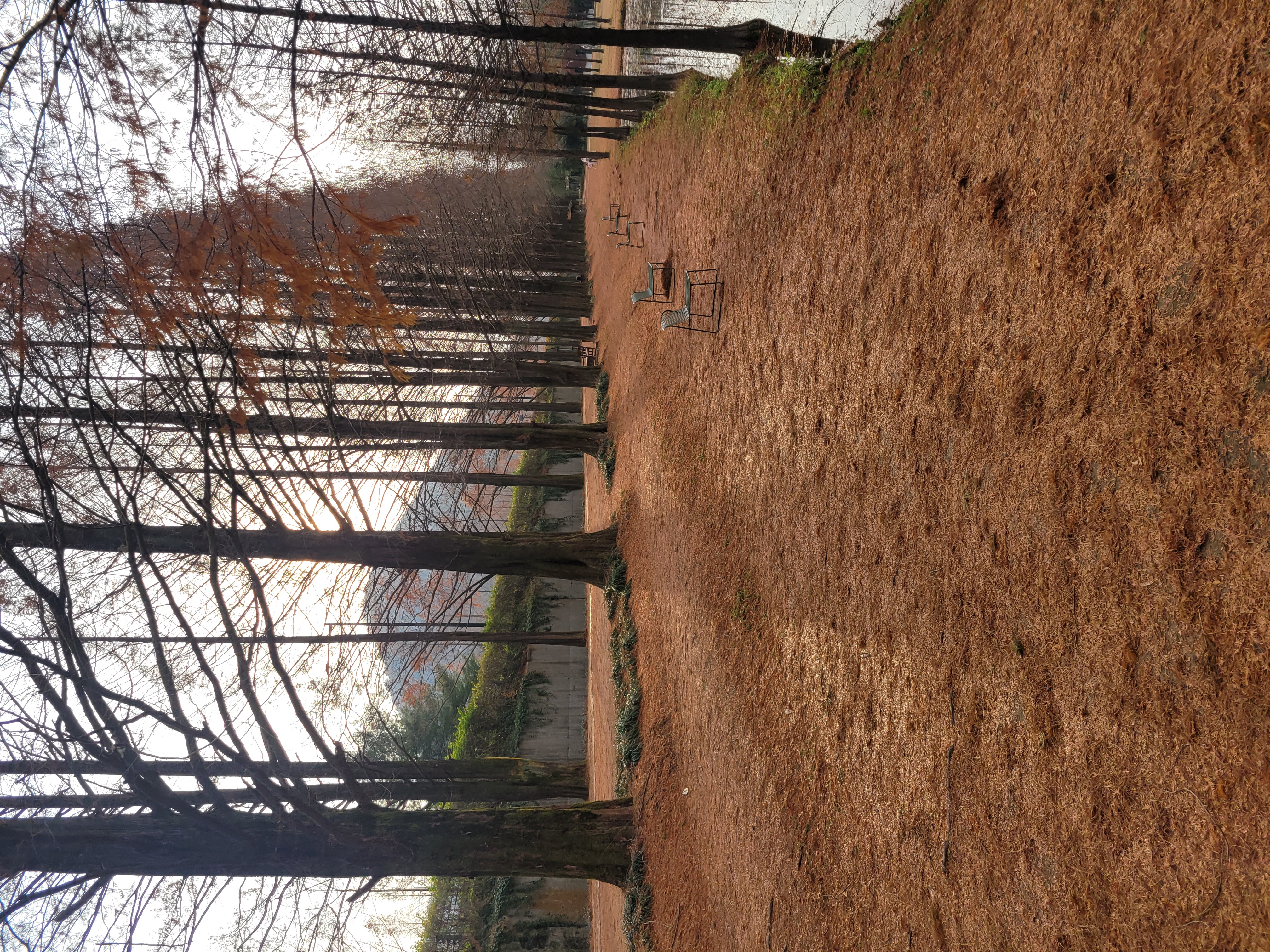 다 떨어진 나뭇잎 사이로 보이는 나무도 그에 어울리는 분위기를 가진 메타세콰이어가로수길!!!