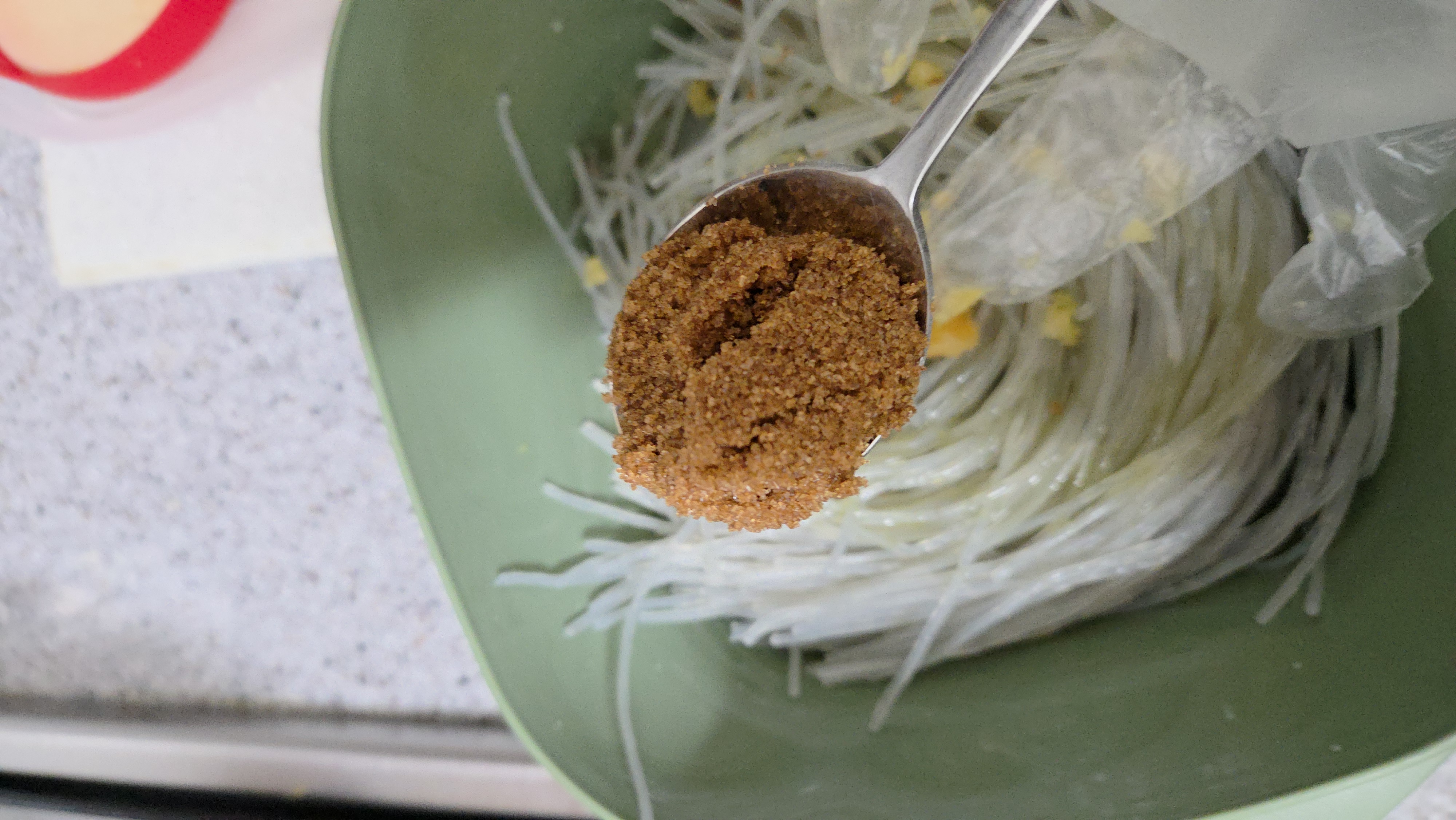 전자레인지에 사용한 그릇에 불린 당면을 넣어줍니다.