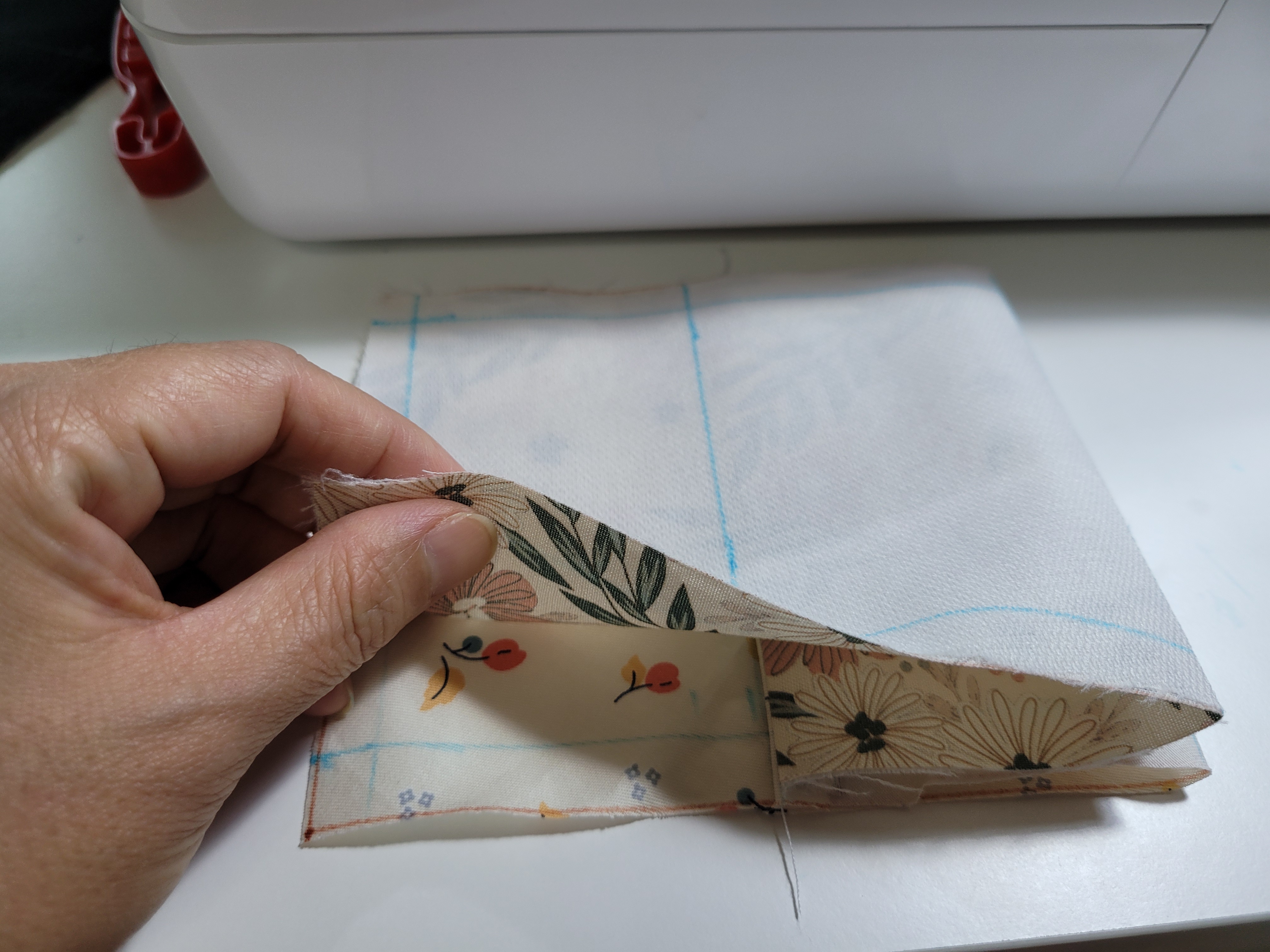 겉감이 될 원단 1장, 안감이 될 원단 1장 그리고 접착심지가 있으면 사용하시구요 없으시다면 그냥 통과하셔도 상관없어요! (접착심지는 겉감에 힘을 주기 위해서 사용합니다. 그리고 안감은 아무 원단이나 상관없어요. 겉감과 어울리는 얇은 원단이면 될듯합니다.)