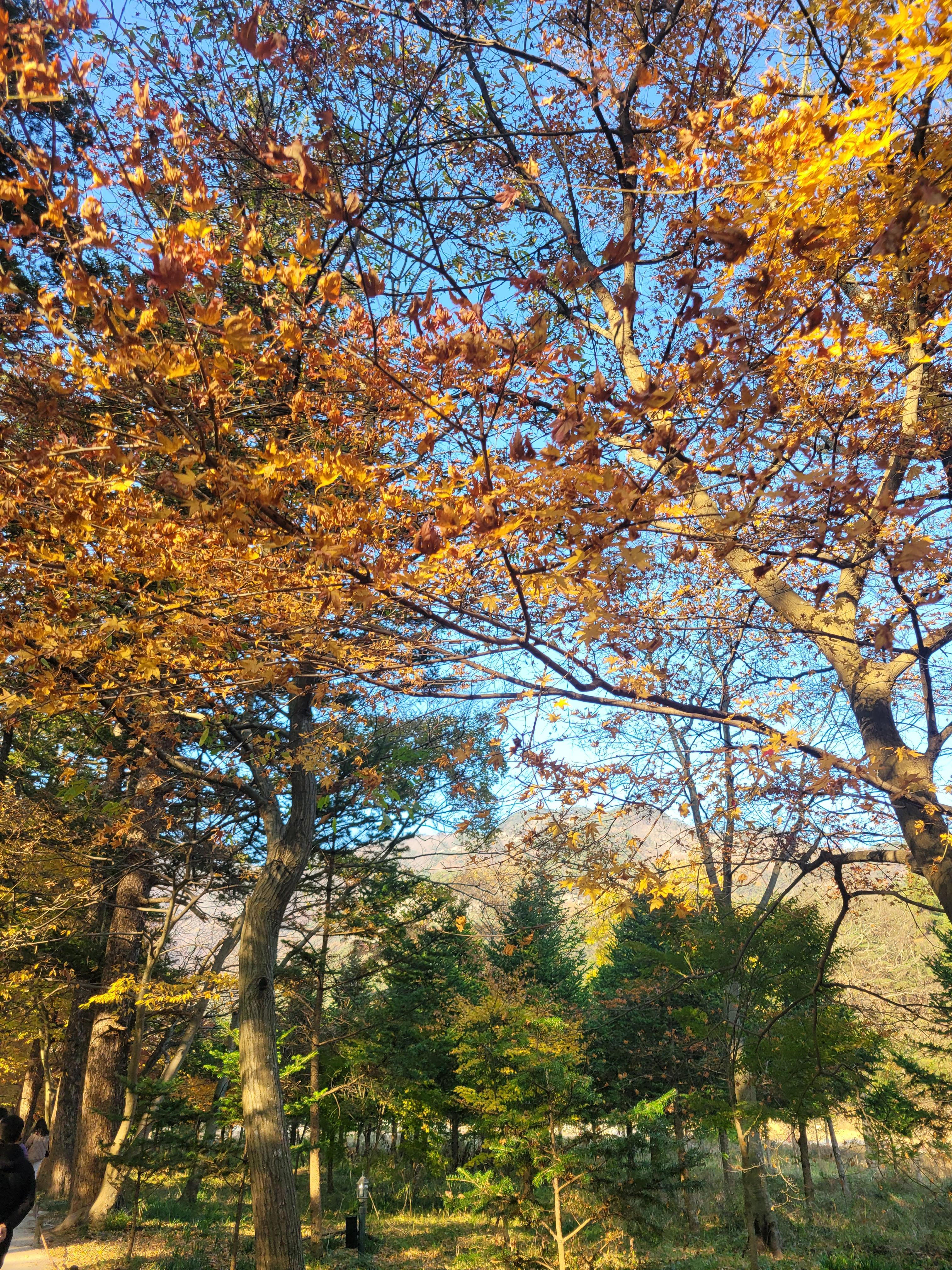 이런.. 단풍나무들은 물이 들어가며 그냥 타들어가듯이 바닥에 떨어진게 더 많은 듯하다.
