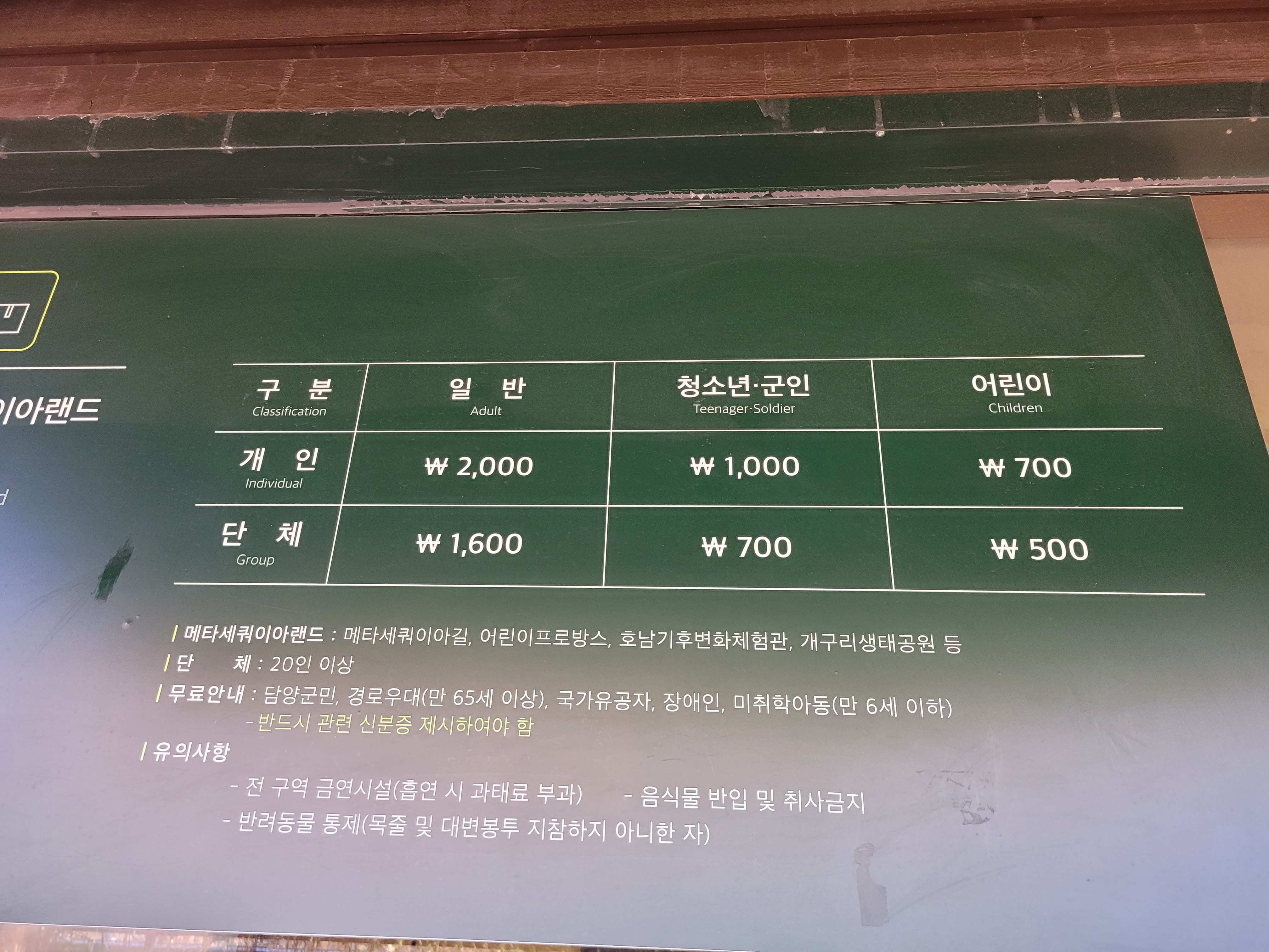 * 무료안내: 담양군민, 경로우대(만 65세 이상), 국가유공자, 장애인, 미취학아동(만 6세 이하)