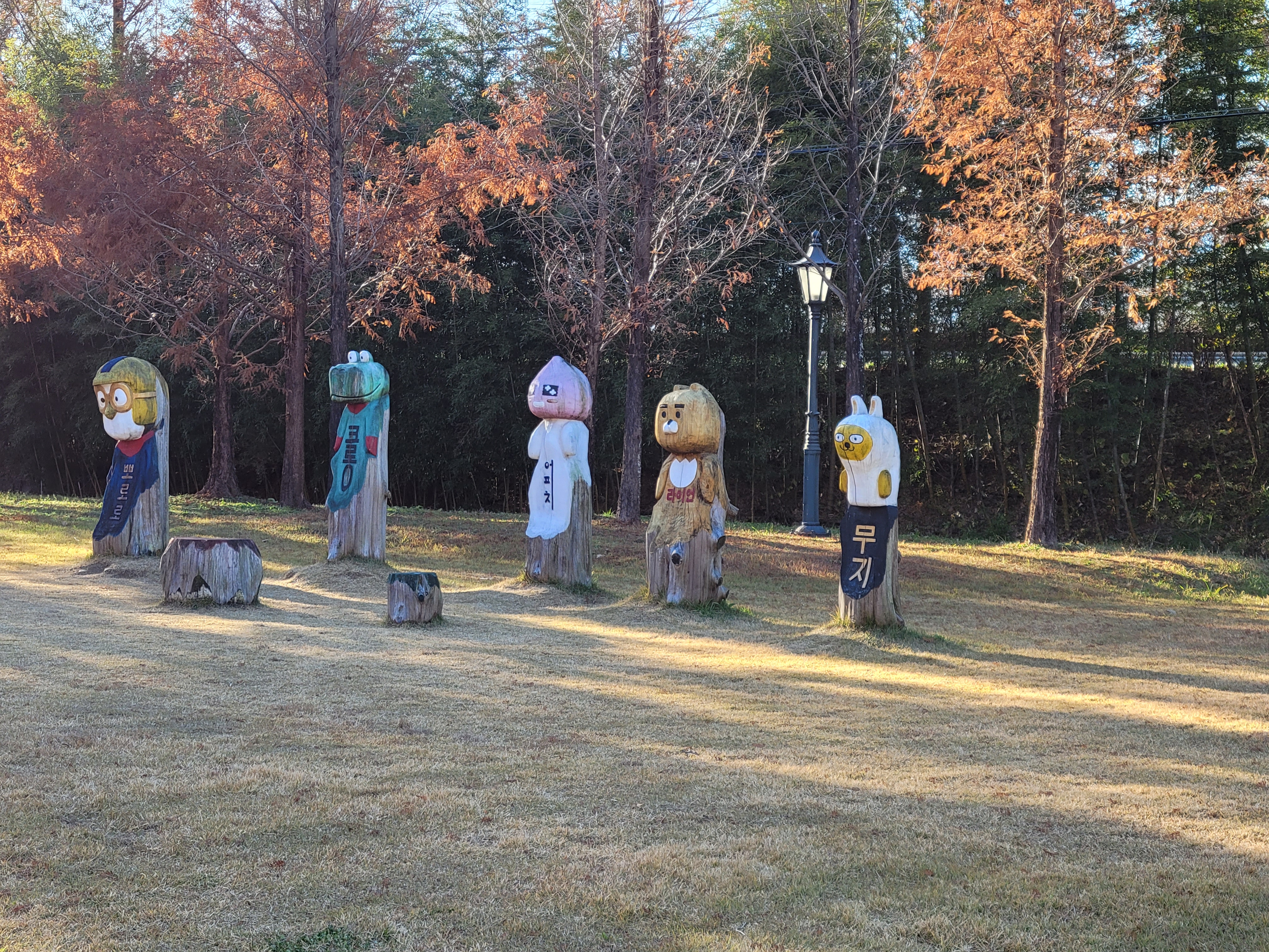 전부다 둘러보지는 않았지만 저희가 돌아오는 시점에서 바라보니 뽀로로, 라이언, 어피치등 귀여운 장승들이 있는데요~