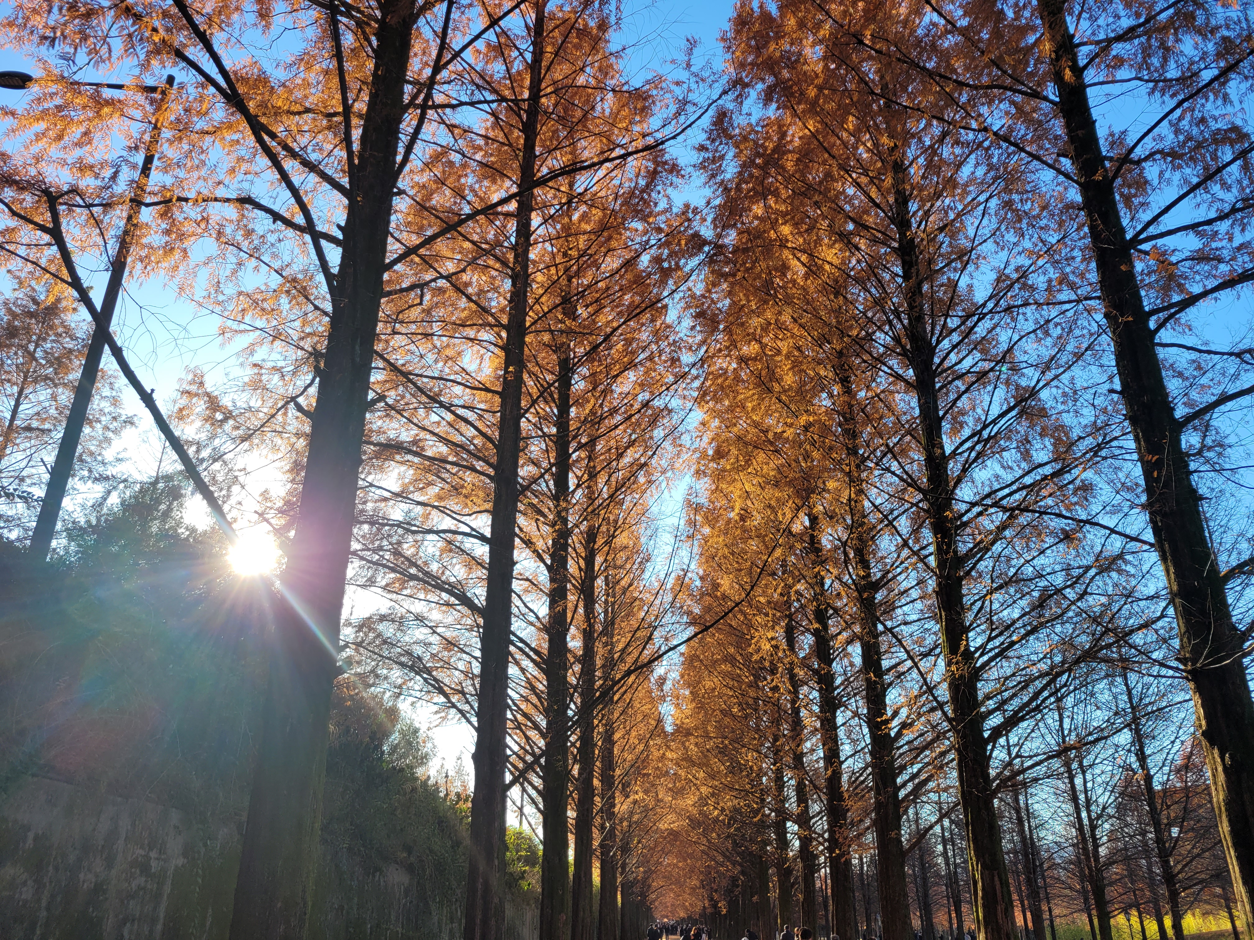 영화, 드라마, 광고 촬영지로도 유명한 메타쉐콰이아길!! 걷다보면 푸릇푸릇한 봄, 여름과는 다른 느낌을 가진 가을!!!